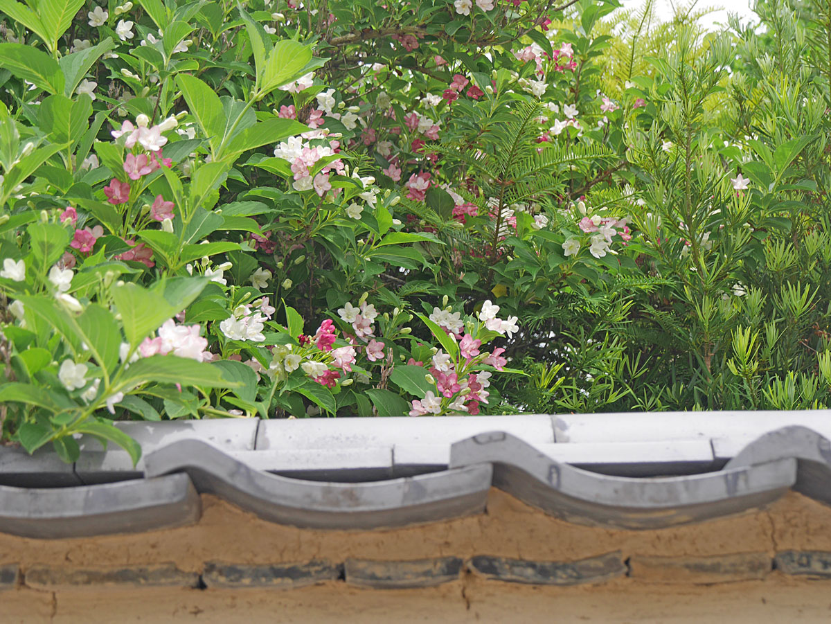 いつものコースで二月堂裏参道を通過中に塀の上に見えていました。一本の木で白、ピンク、赤色の花が咲いておりまして、それほど花に詳しくない私にはとても珍しく感じました。グーグルレンズで調べたところ箱根空木(ハコネウツギ)と思われます。オオベニウツギではないように思います。